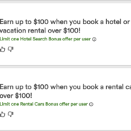 Capital One Shopping has an offer showing on their homepage for vacation bookings and car rental bookings: Earn up to $100 when you book a hotel or vacation rental over $100 through the Capital One booking portal. Earn up to $100 when... Read More →