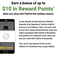 Get $10 with the Fidelity 2% card: Make a purchase via PayPal in November and get $5. Do the same in December and get another $5 Read More →