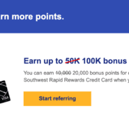 Chase has increased the referrer bonus on the Southwest cards to 20,000 points per referral. Max 100,000 points can be earned each calendar year. The new member earns the same signup bonus as with the public link. Be sure to generate a... Read More →