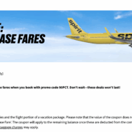 Spirit Airlines is offering 90% off base fares with promo code 90PCT Travel dates: 1/21/26 – 3/4/26 (Tue/Wed/Sat Only) Blackout dates: 2/14/26, 2/17/26, 2/21/26 Book by 11:59 PM EST on January 14, 2026 Read More →
