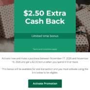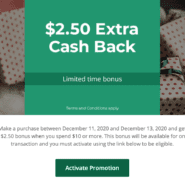 Make a purchase between December 11, 2020 and December 13, 2020 and get a $2.50 bonus when you spend $10 or more. This bonus will be available for one transaction and you must activate using the link above to be eligible. Read More →