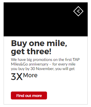 Looks like they will be offering an award sale soon, as well as some sort of discount on the Club TAP Miles&Go (lets you buy miles for 0.82¢ per mile). Given that Club TAP is so much cheaper than this promotion, I don’t think buying miles makes sense. I’ll be interesting to see what the upcoming discount on Club TAP is. Biggest problem with this program is the high fuel surcharges though and reducing the cost of miles doesn’t really help with that.