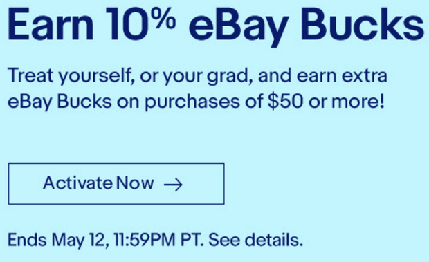 - eBay sent out a targeted offer today for 10% back in eBay Bucks on items $50 or more