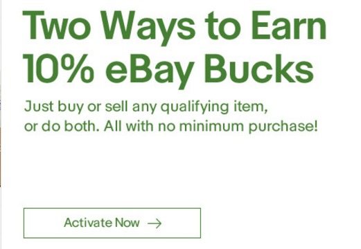 - Earn 10% in eBay Bucks on any qualifying item you buy or sell