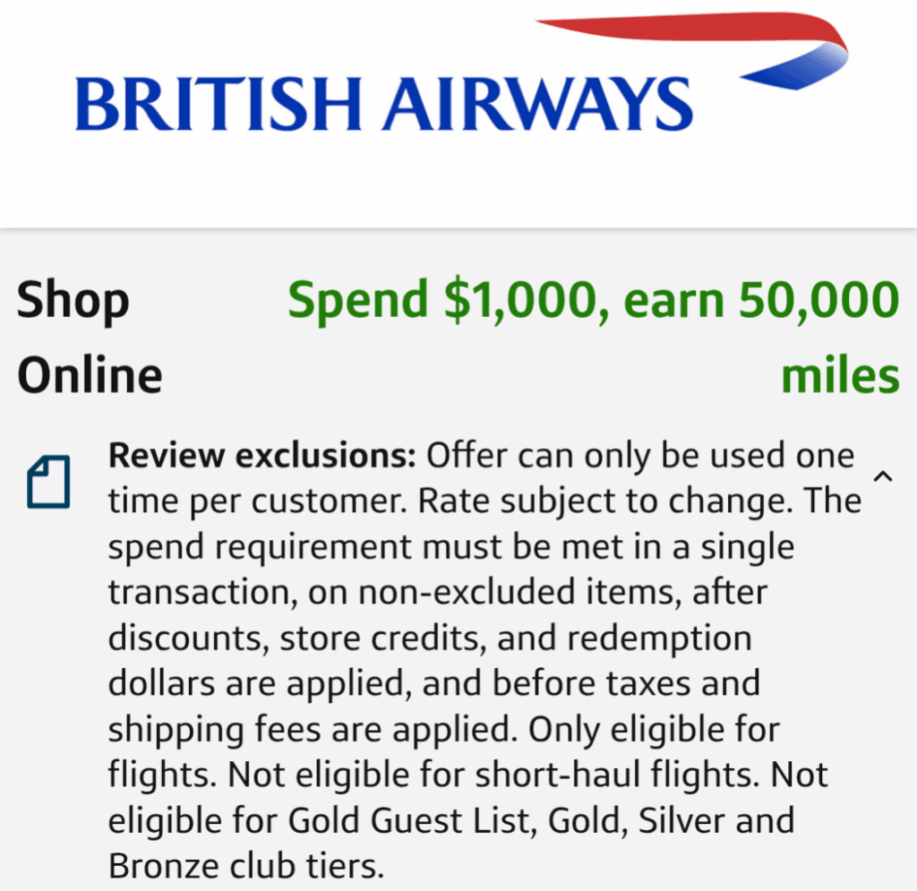 - Capital One is offering 50,000 miles when you spend $1,000+ on British Airways