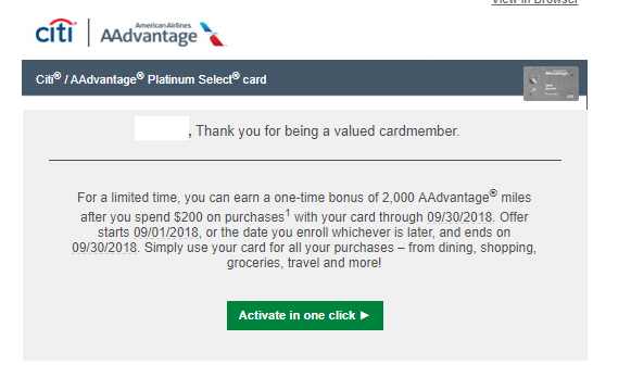 Citi has started sending out targeted spending bonuses for September, 2018. Spend must be completed from September 1st until September 30th and the offer must be activated as well.