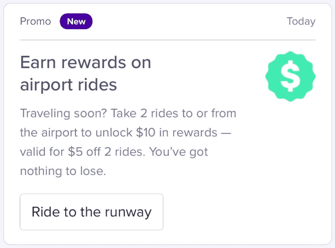 - Lyft is offering some users two $5 credits if they complete two trips to/from an airport