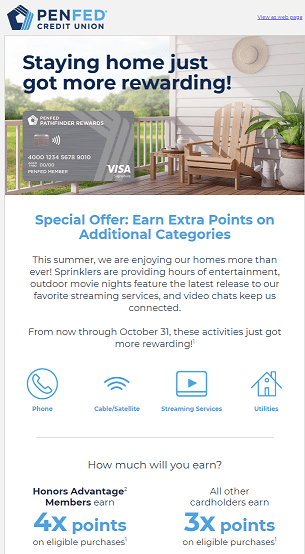 Targeted offer, sent out via e-mail subject line ‘Limited-time offer on Penfed Pathfinder Visa Card’