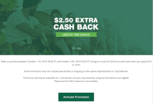 - Make a purchase on October 11th through October 13th and get an extra $2.50 bonus cash back when you spend $10 or more.