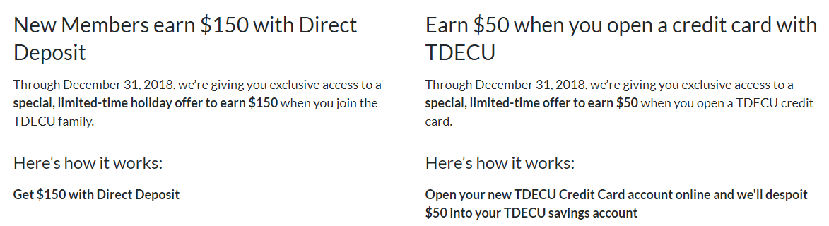 - Open a new TDECU checking account and add a recurring direct deposit of $100 or more and receive $150