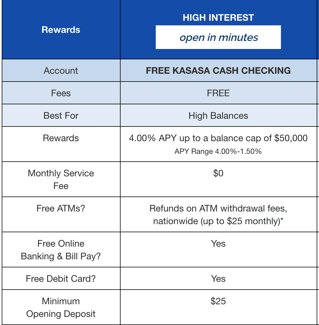 - Texas Bank Financial has their Kasasa Cash checking account which offers 3.56% APY on balances up to $50,000 when you meet the following requirements: