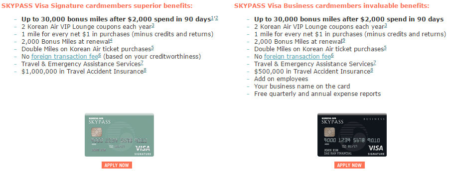 - The U.S Bank Korean Air SKYPASS personal and business cards have had their bonuses increase to 30,000 miles after $2,000 in spend. The standard bonus on these cards is 15,000 miles after first purchase.
