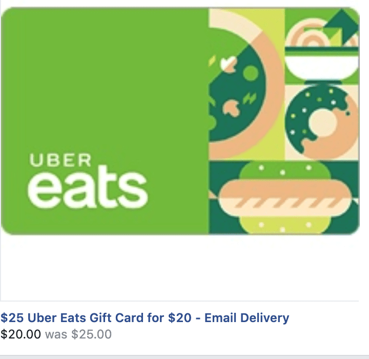 20% off UberEATS is especially good as these gift cards can be used for ordinary Uber as well.