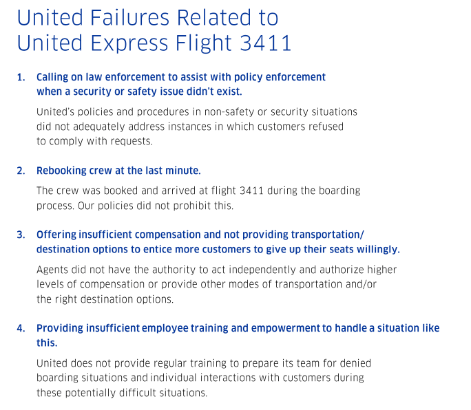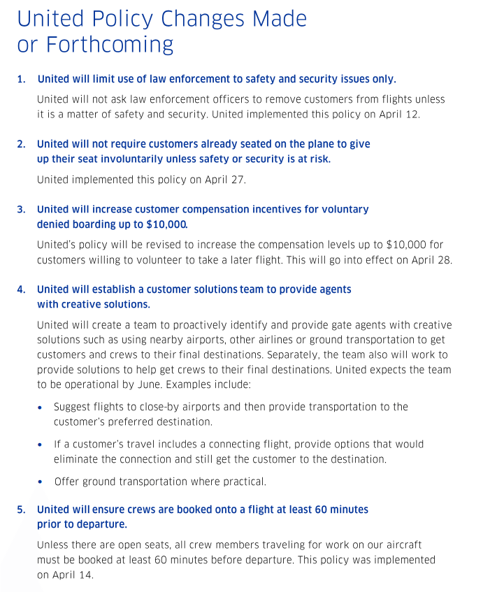 United has released an 11 page review and report of the United Flight 3411 incident (commonly referred to as bump gate). Gary from View of the Wing has uploaded the full report here and you can view his thoughts here. The report is quite interesting to read and overall I think United does a great job to identify the problems and then goes on to make a number of policy changes to address those problems.