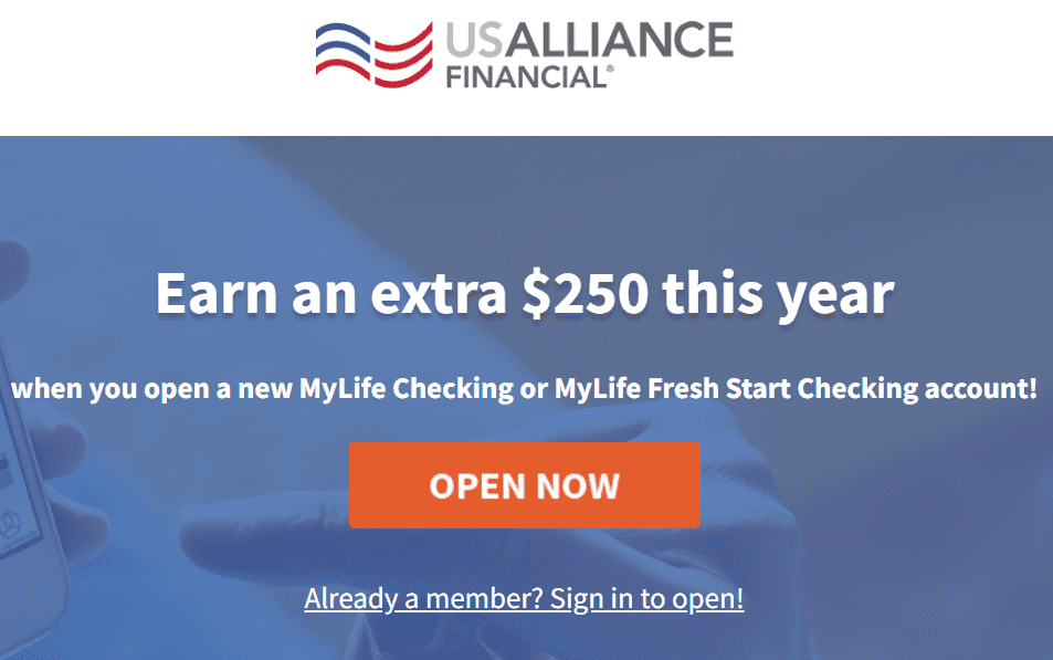 - US Alliance Financial are offering a bonus of $250 when you open a new MyLife Checking account and complete the following requirements: