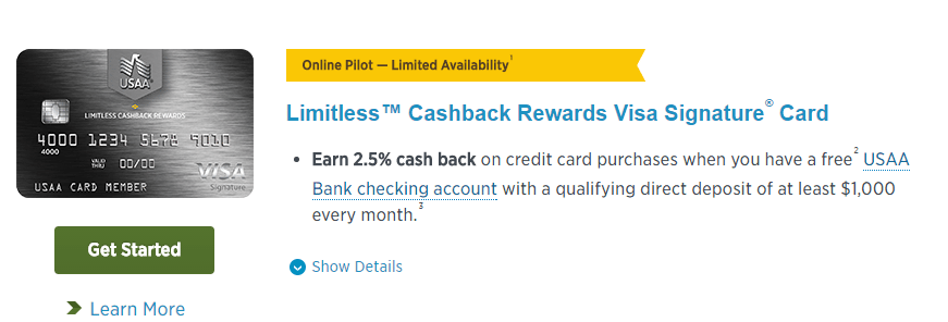 USAA offer the Limitless card that offers 2.5% cash back (if you have a $1,000 monthly direct deposit into your USAA checking account). Making it one of the best cards for non bonused spend. The card is in a pilot program and they are slowly adding more states, it’s now also available in AR, CT, FL, ND, MN. A full list of the states it’s available in is as follows: