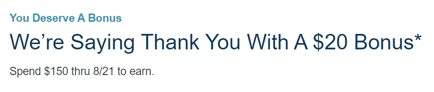 - Offer valid from 8/3/20 at 12:00am Eastern Time (“ET”) through 8/21/20 at 11:59 pm ET (“Bonus Period”).