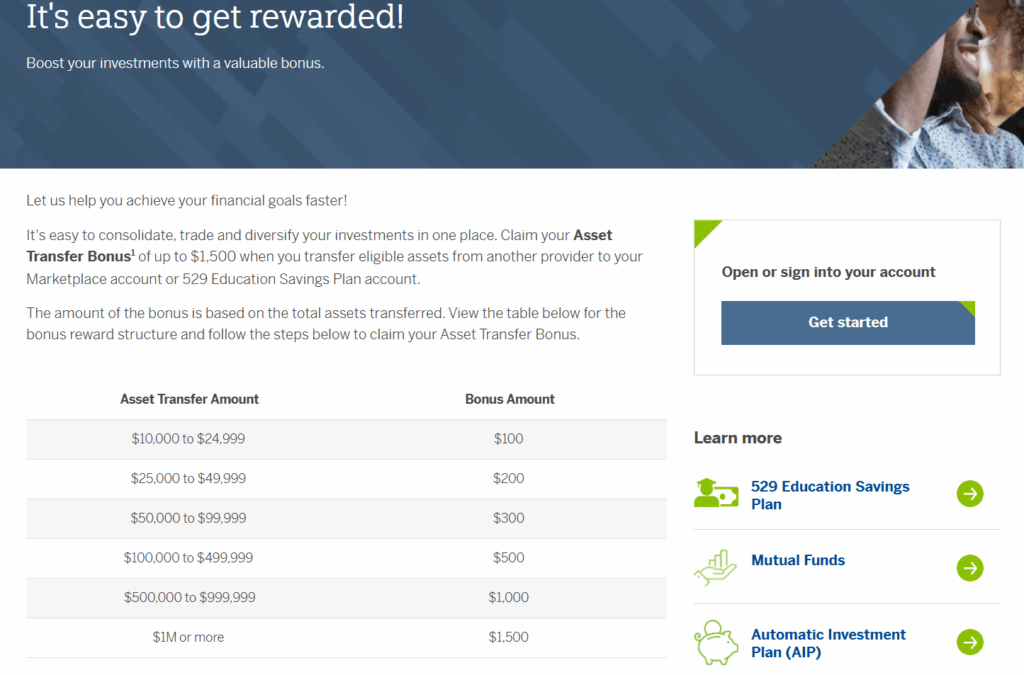 - The Marketplace Asset Transfer Bonus is available only to investors making their first transfer into a Marketplace brokerage account on or after April 24, 2023, through April 30, 2026.