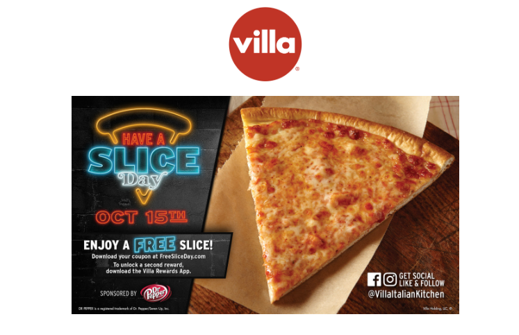 - Villa Italian Kitchen is offering a free slice of pizza on 10/15/19. Looks like you get a second reward when you download the app, not sure what the reward is