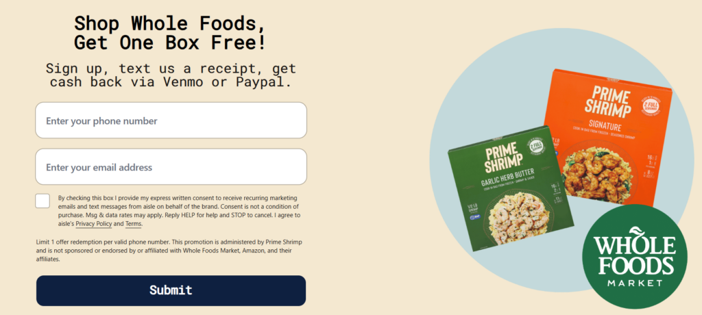 [Expired] Whole Foods: Free Prime Shrimp After Rebate March 13, 202579 Commentsby William Charles Contents1 The Offer2 Our Verdict The Offer Direct link to offer Get a free box of prime shrimp after rebate at Whole Foods Our Verdict Free is free.