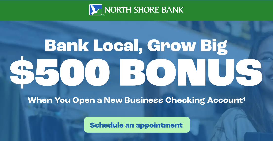 First time we’ve seen a business checking bonus from North Shore often we see a personal checking bonus of $400. Downside to this bonus is that it must be opened in branch. We will add this to our list of the best business checking bonuses.