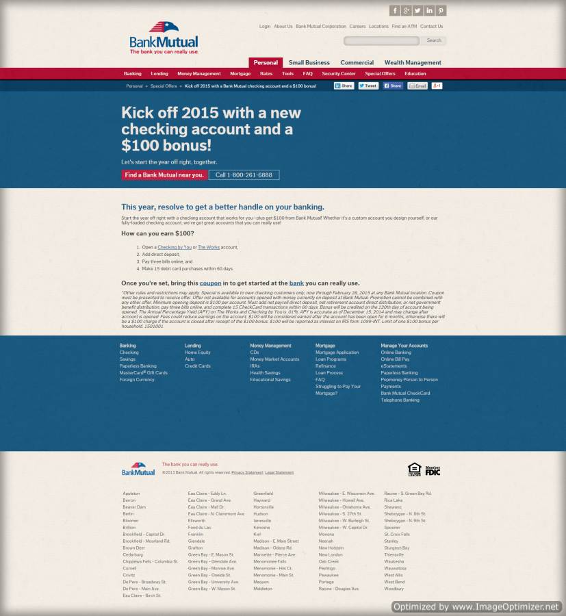 - Open a Checking by You or The Works account with Bank Mutual and you can receive a $100 sign up bonus if you complete the following:
