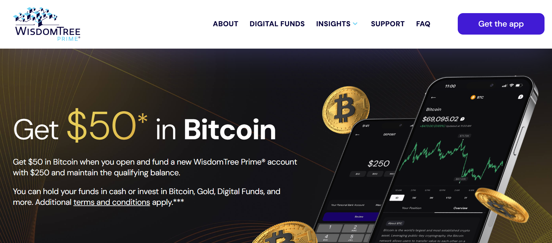 - WisdomTree Prime is offering a $50 bonus when you deposit $250+ and maintain that balance for 45 days.