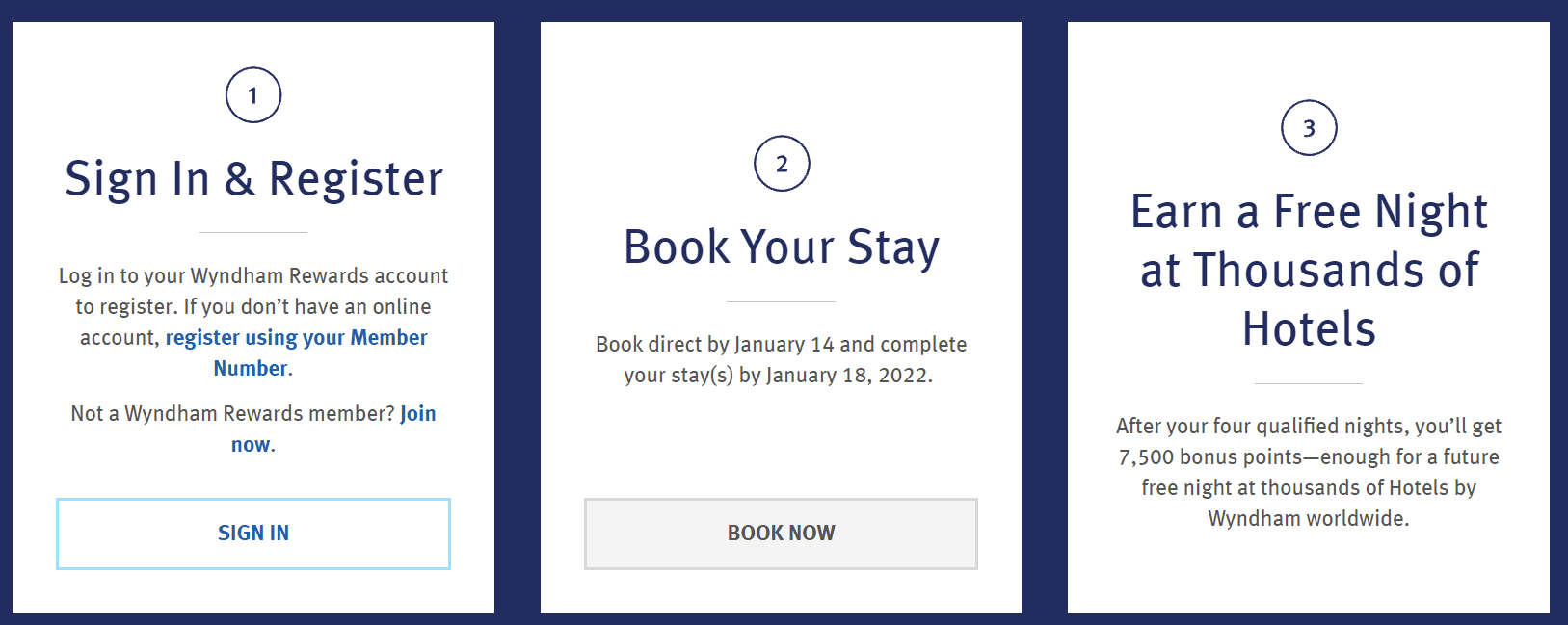 - Wyndham is offering 7,500 bonus points for every four nights you stay (nights do not need to be consecutive).