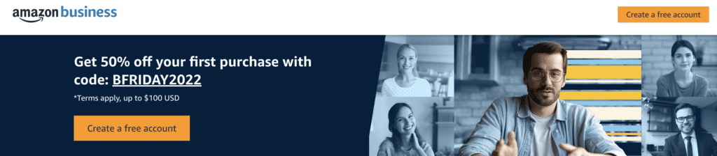- Offer can be redeemed by applying the promotional code BFRIDAY2022 on a verified Amazon Business account.