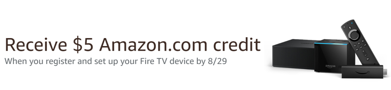 - Amazon is offering some users a $5 or $10 credit when they register their Fire TV device by August 29th, 2019