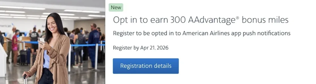 - American Airlines is offering 300 miles for free when you enable push notifications