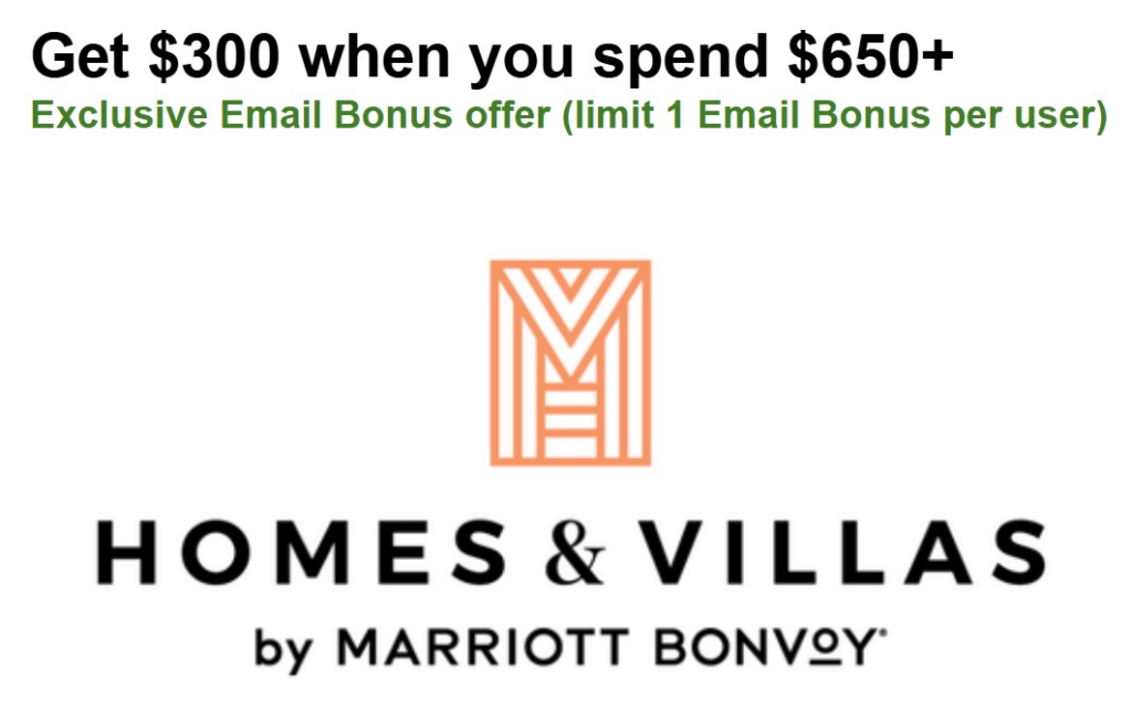 - Homes & Villas by Marriott: Spend $650 and get $300 back