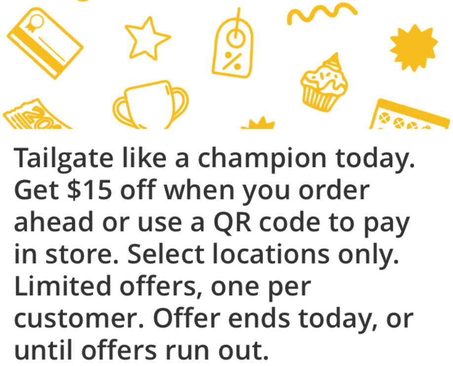 - Chase Pay is offering $15 off select restaurants when you order ahead or you pay via scanning the barcode