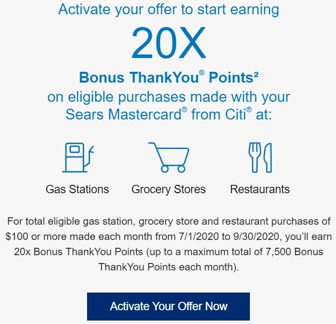 - Citi is offering some Sears cardholders 10% or 20% back on gas stations, grocery stores & restaurants.
