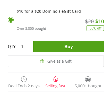 - Groupon is selling a $20 Domino’s giftcard for $10