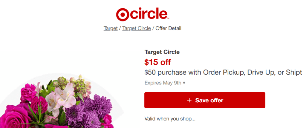 - Target circle is offering some members $15 off $50+ Order Pickup, Drive Up, or Shipt